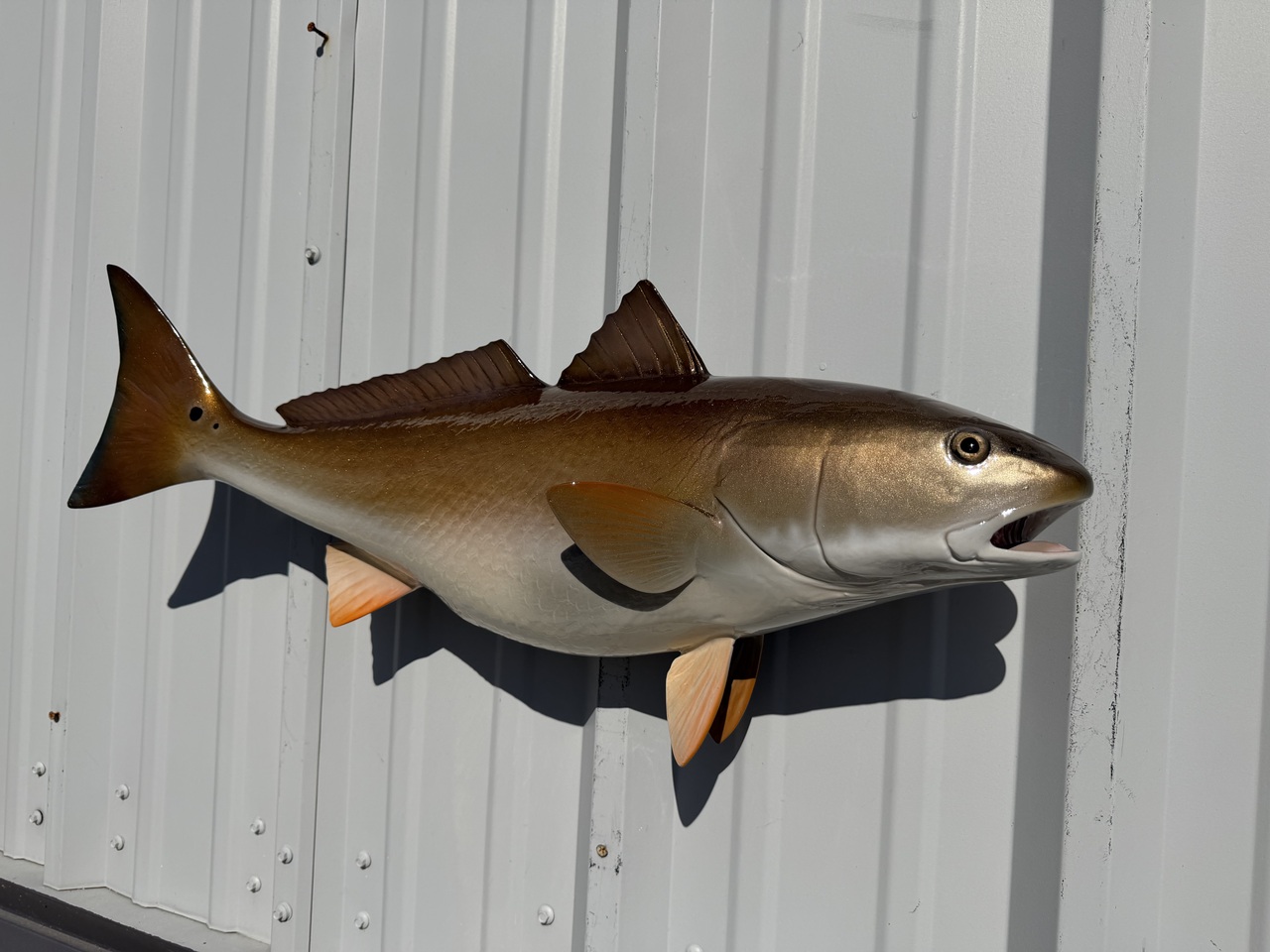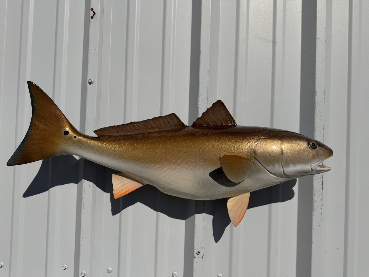 This beautiful 29" right facing redfish full mount, which we call a two sided wall mount, has incredible relief on this scales and was molded off a perfect specimen. This fish mount is extremely realistic, including custom painted eyes on both sides of the head and great skin texture that was captured during the molding process.