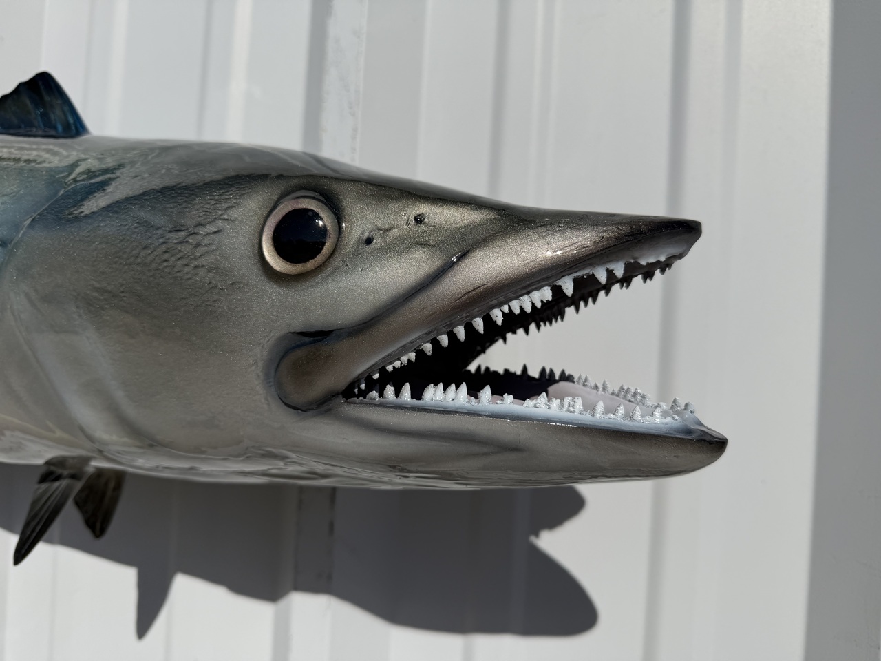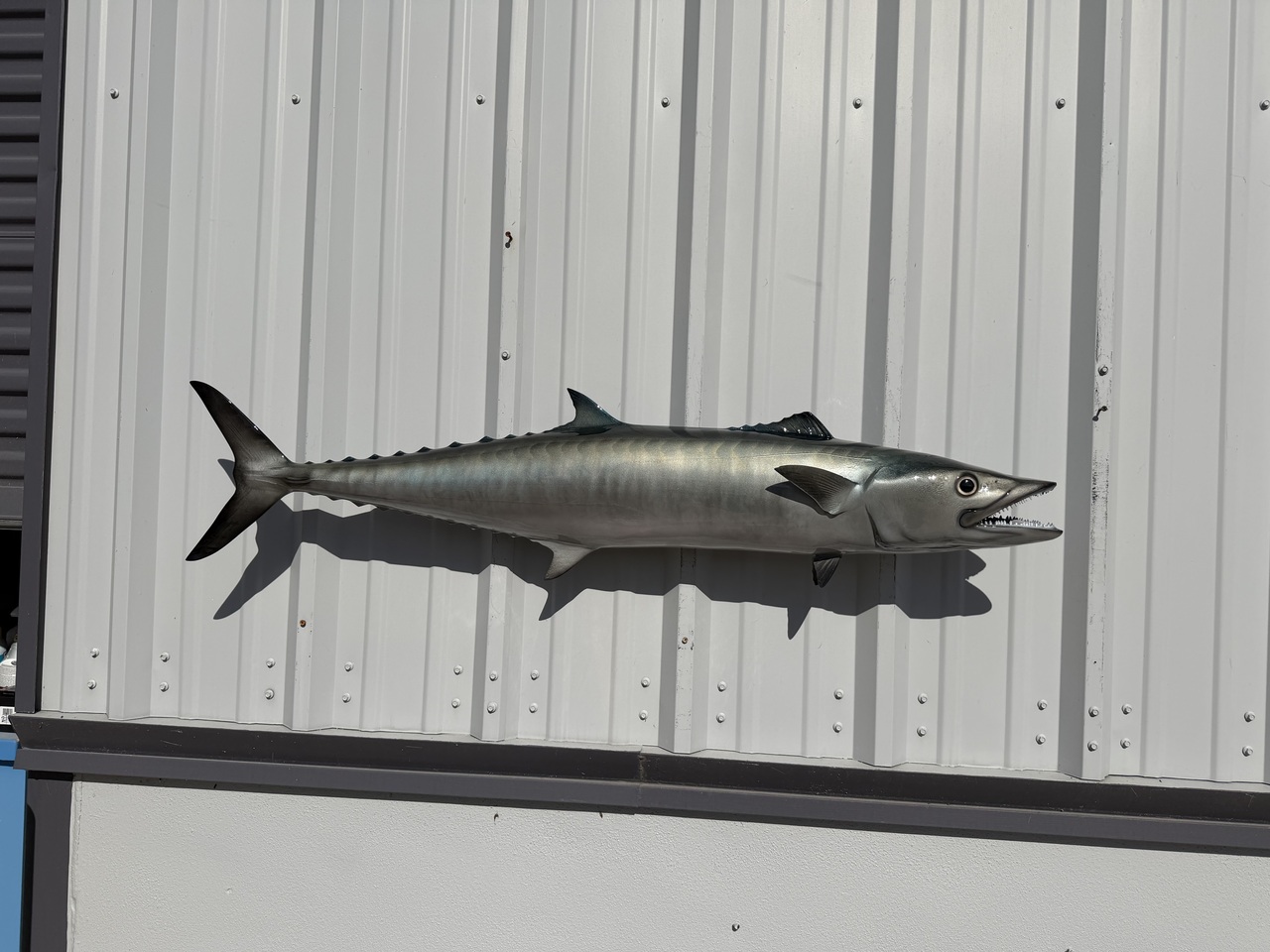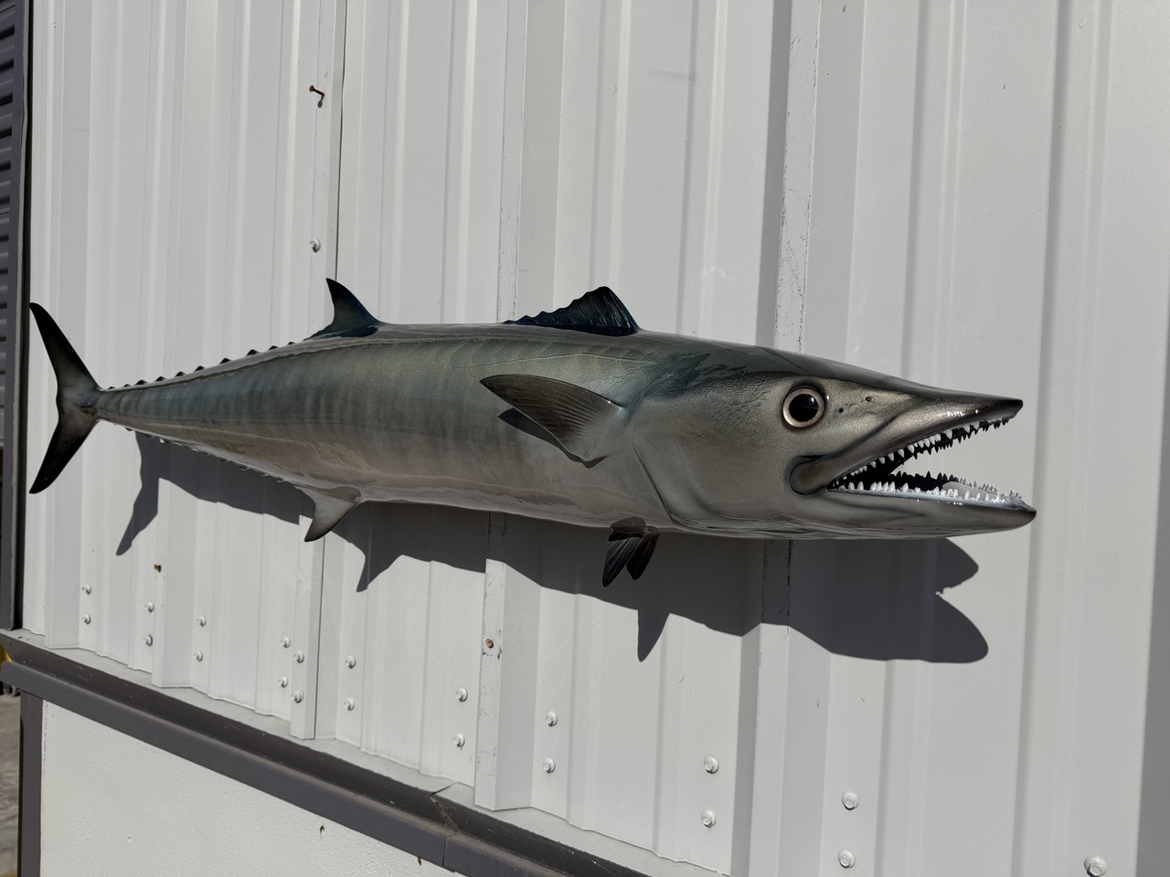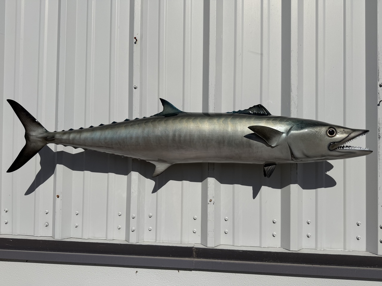 This amazing 49" Kingfish Full Mount is a two sided wall mount is in stock and ready to ship. The images you see above are pictures of the actual kingfish mount you will receive if you order this item. Kingfish, or King Mackerel, are a highly sought after recreational and commercial fish. They are known for their lighting fast bites and are normally fished for with live baits slow trolled behind the boat.